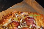 Porționează aluatul foietaj în 9 părți egale. Așază-le într-o tavă tapetată cu hârtie de copt.