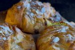 Întinde aluatul foitaj și taie-l în 8 părți egale. Pune câte o linguriță...
