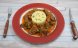 Muşchi cu cârnaciori afumaţi şi ciuperci la cuptor