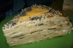 Preparati aluatul de clatite astfel: puneti faina intr-un castron, 3 oua plus un albus (pastrati un galbenus pentru crema de branza), putina sare, 3 linguri de ulei, si incepeti sa incorporati apa, amestecand cu un tel in forma de para. (se poate prepara si in blender sau cu mixerul) Incorporati...