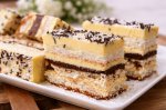 2 Foi: mixam spuma albusurile cu un praf de sare, adaugam zaharul, iar la final fulgii de cocos amestecati cu faina. Aceasta compozitie o impartim in 2 si coacem 2 foi (25*35 cm). Putem imparti cantitatea in 2 , inca de la inceput si coacem 2 foi. Crema: mixam galbenusurile cu zaharul pana...