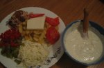 Spalam si curatam cartofii,ii taiem feliute nu prea subtiri si punem la prajit in uleiul incins si presaram o lingurita delicat. Spalam si dezosam pulpele de pui si incercam sa le facem sa arate ca niste filete si le ungem cu putin piper,delicat si cimbru si intr-o tigaie frigem filetele fara...