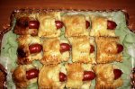 Se lasa aluatul la decongelat la temperatura camerei.Se pune pe masa de lucru si se intinde cu sucitorul. Se taie in dreptunghiuri.Se pune cate un carnat in partea de sus,apoi se acopera cu partea de jos.Se face model cu o furculita pe margine pentru a nu se desface in timpul coacerii. Se...