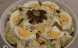 Salamul se taie cubulete si prajeste in putin ulei. Ouale se fieb si se curata.