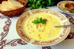 Ciorba de fasole cruda, cu pastrama de porc afumata si leustean