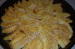 Curatam si spalam cartofii, ii taiem ca pentru cuptor, apoi ii lasam 15 minute in vin si usturoi zdrobit amestecandu-i cu mana din cand in cand. Adaugam si rozmarinul si-i frecam putin, apoi uleiul, sarea si piperul. Ii punem la punga magica, cu tot cu sosul lor, punem si bucatelele de unt...