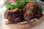 Sandvis Po'Boy cu ficatei de pui prajiti si ceapa sotata