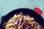 Se fierb taiteii conform instructiunilor de pe ambalaj, in apa sarata. Se pudreaza carnea de porc cu mixul de condimente chinezesti, sare si piper. Se incalzesc 2 linguri de ulei intr-o tigaie (eu am folosit una din fonta) si se prajeste carnea 7 minute, intorcand-o frecvent. In...