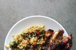 Se curata aripioarele si se presara cu sare, piper si 5 condimente chinezesti. Se transfera intr-un vas potrivit pentru cuptor, se acopera cu foile de aluminiu si se gatesc 50 de minute la 180 de grade Celsius. Intre timp, se fierbe orezul conform instructiunilor de pe ambalaj. Se scurge...