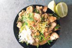 Se incalzeste uleiul intr-un wok sau tigaie si se adauga pasta de curry, ghimbirul si pieptul de pui. Se gatesc la foc mare 3 minute, apoi...