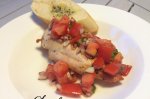 Se amestecă roșiile cu usturoiul, ceapa, bucuiocul, sare, piper, ulei de măsline și oțet și se lasă la frigider până se gătește pieptul de pui.