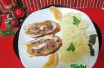 Gratin din piept de curcan umplut cu ciuperci si caise in sos de smantana cu cascaval