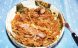 Spalam pieptul de pui si il feliem dupa preferinta. Prazul spalat se taie rondele; ardeiul rosu spalat se taie fasii. Se calesc in ulei, se condimenteaza si apoi adaugam pieptul de pui feliat. Punem o cana de apa si acoperim tigaia sa fiarba la foc mic pana scade apa. Adaugam pasta de...