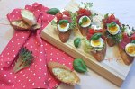 Aperitiv bruschetti cu mozzarella, rosii cherry si busuioc