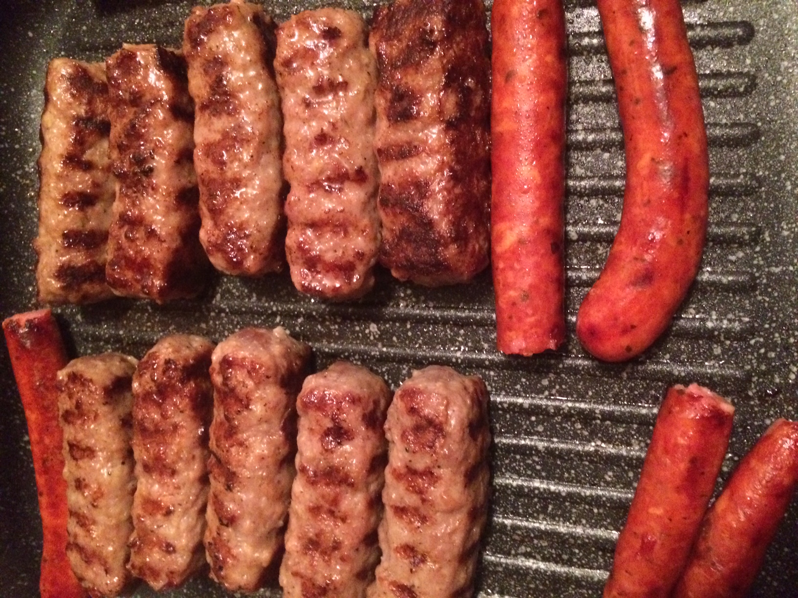 Normal, cum micul e frate cu românul :)), am zis sa vad cum se comporta grill-ul nostru cu mititeii. S-au imprietenit repede, dupa ce in prealabil l-am incins putin, iar dupa asezarea micilor l-am dat pe un foc mic. In paralel am pus si citiva cabanosi. Totul a fost ok.