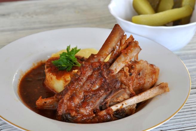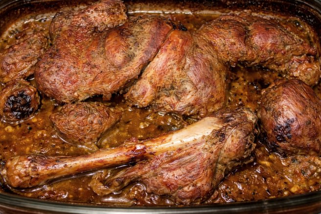 Carnea se gateste lent, la temperatura potrivita, astfel incat sa ramana suculenta la interior si usor rumenita la exterior. De obicei, este aromatizata cu usturoi, vin si ierburi precum rozmarinul sau cimbrul, care ii dau un parfum inconfundabil. Este o alegere ideala pentru masa festiva, fiind atat satioasa, cat si plina de savoare.