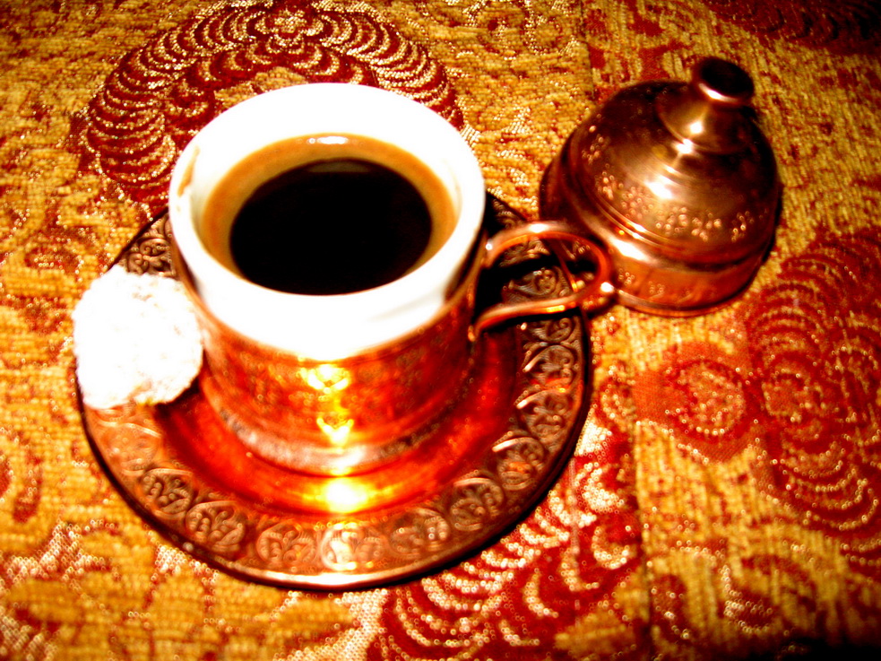 Apai, voi va-nchipuiti ce burti rotunde aveam dupa ce am dat gata toate astea? Dar nu ne-am lasat, asa am invatat noi la orele de istorie, ca niciodata nu ne-am dat batuti in fata spahiilor! Am sorbit o cafea turceasca, servita pe-un suport de alama si insotita de o bucatica de rahat. (Pret: 10 lei)