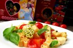 Mai intai punem o oala cu apa la fiert. Intre timp, spalam rosiile, indepartam codita si le taiem in doua sau in patru parti, in functie de marimea lor (daca folositi rosii mari, taiati-le cuburi). Mozzarella o scurgem bine de apa de conservare,o stergem cu un servet si o taiem...