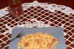 Pastele le fierbem conform instructiunilor de pe ambalaj si le scurgem de apa. Carnea o taiem in cubulete si o punem la prajit in ulei cand este aproape gata adaugam ceapa taiata marunt si o lasam sa se caleasca impreuna apoi adaugam sosul de rosii si condimentam dupa gust si amestecam cu...
