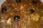 Bunnnn, frecam carnea cu sare si piper, apoi facem sosul din usturoiul tocat marunt, sosul de rosii si pasta de ardei iute, apoi punem condimentele si vinul ( 50 ml) si imbracam muschiuletul cu pasta aceasta.
