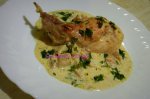 Intre timp preparam sosul. Amestecam bine faina cu smantana si cu laptele. Apoi adaugam zeama de la o...