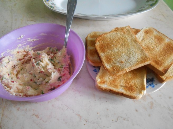 Aperitiv pasta tartinabila din branza de burduf, cu ceapa verde si ardei gras