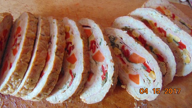 Aperitiv rulada de carne tocata cu sunca, cascaval si legume-0