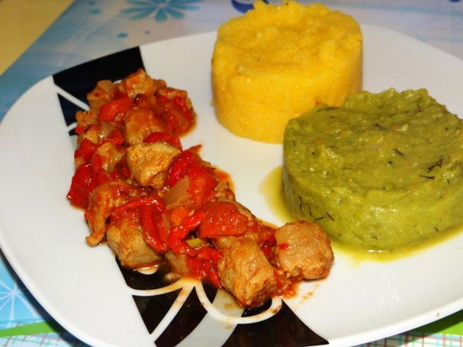 Ardei copti cu soia si piure de mazare