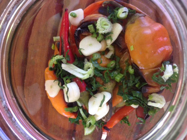 Ardei iuti copti pusi in ulei la borcan