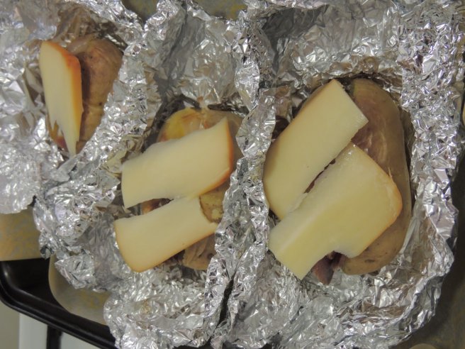 Cartofi copti, cu sunca, carnati si branza topita-2