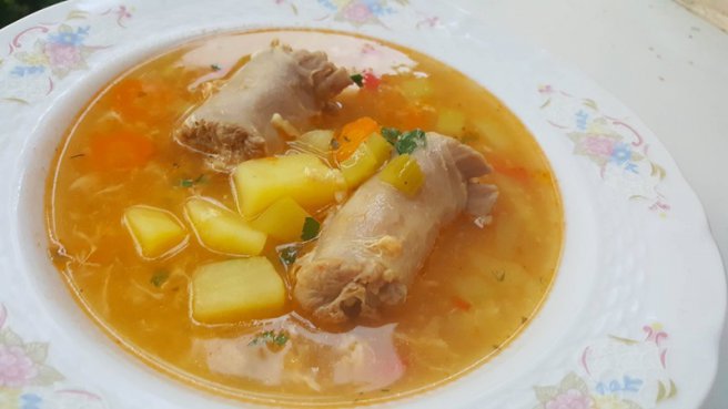 Ciorba acra din gaturi de curcan cu legume-0