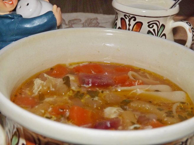 Ciorba cu dovlecel si sfecla rosie acrita cu zeama de varza
