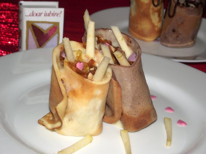 Clatite bicolore cu crema de vanilie, mar si nuci caramelizate-0