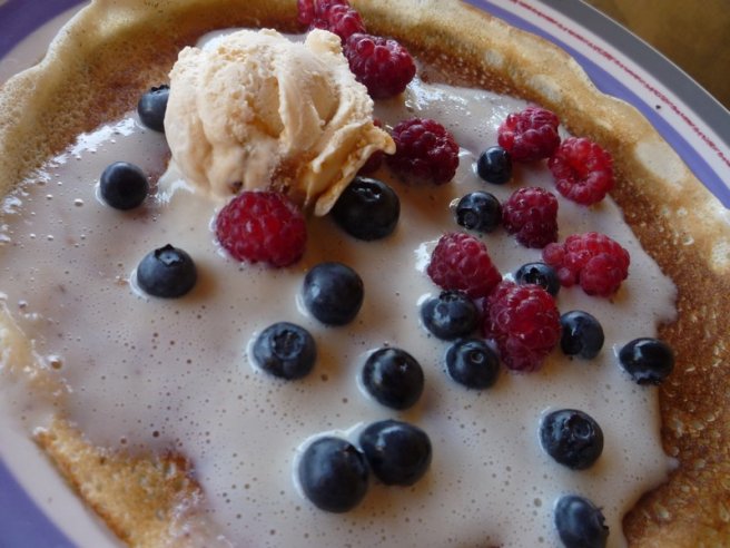 Clatite cu sos de vanilie, fructe de padure si inghetata-0