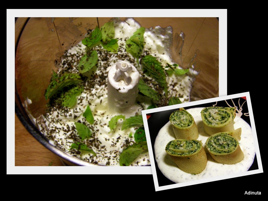 Clatite cu spanac (Crespelle di spinaci) in sos de iaurt cu menta