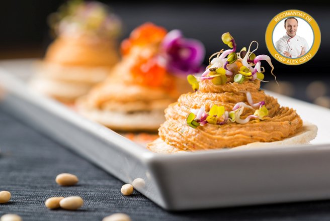 Crema de somon cu tofu pe crouton cu blenderul Oster