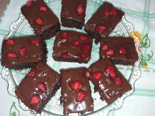 Desert negresa pufoasa cu ciocolata si capsune-1
