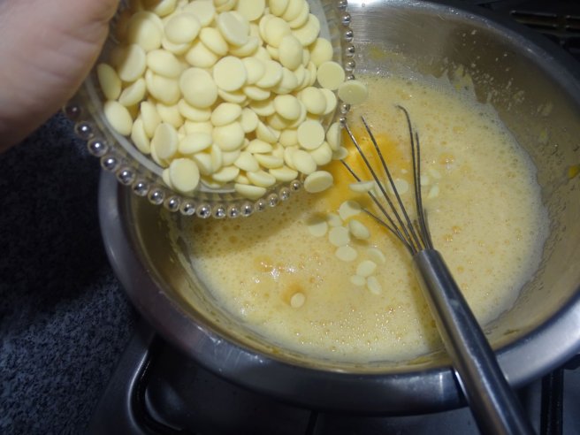 Desert prajitura cu crema de piersici si krant de alune de padure