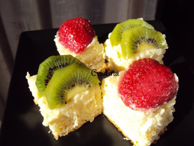 Desert prajitura cu crema de vanilie si fructe