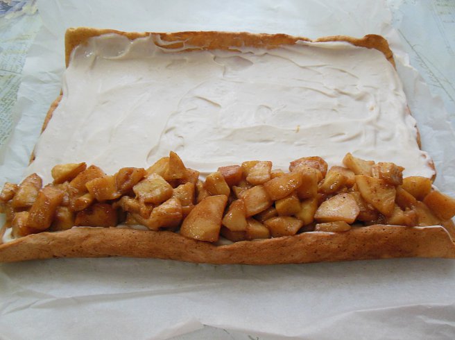 Desert Rulada cu crema cu lapte de cocos si mere caramelizate