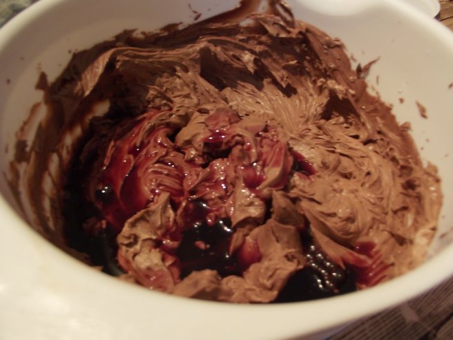 Desert tort cu crema de ciocolata si jeleu de coacaze negre