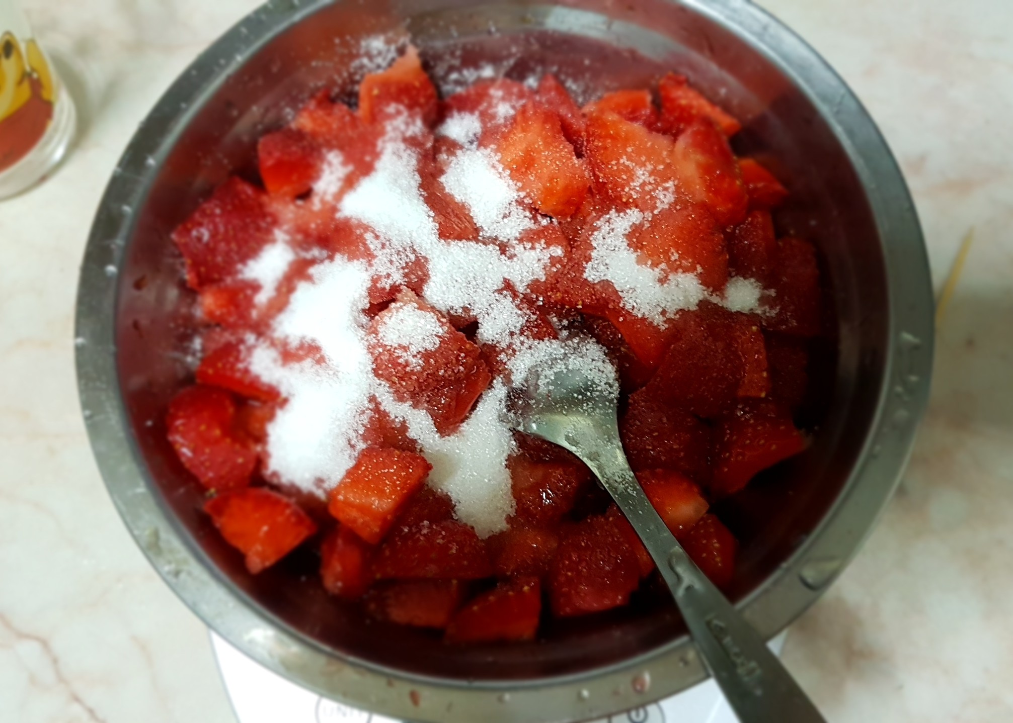 Desert tortulet cu capsuni si crema de lapte cu ciocolata alba-3