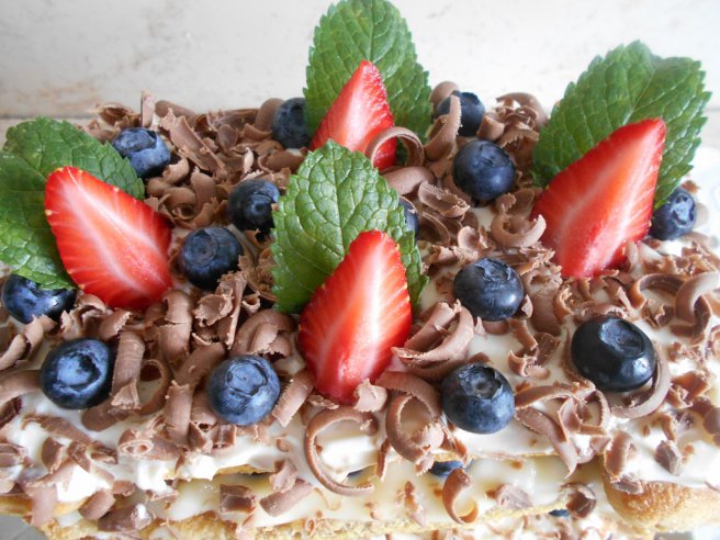 Desert tortulet cu doua creme, afine si ciocolata-1