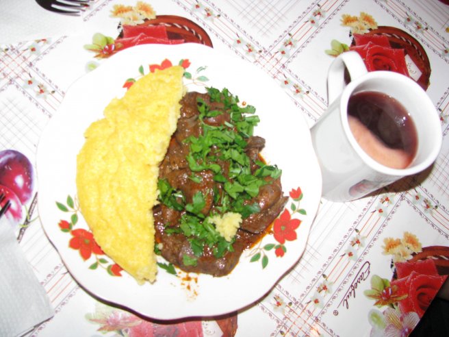 Ficatei in sos de vin cu mamaliguta