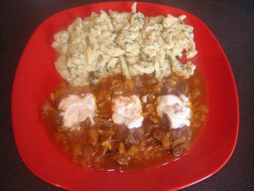 Gulas de vita cu galusti (Kalbsgulasch & Butternockerln)