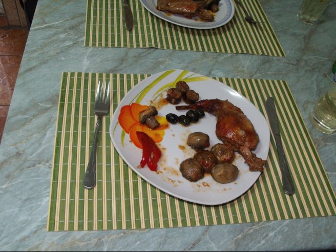 Iepure cu carnati, ciuperci si masline la cuptor-0
