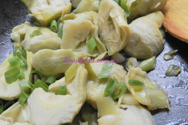 Inimi de anghinare sotate cu usturoi și ceapă verde