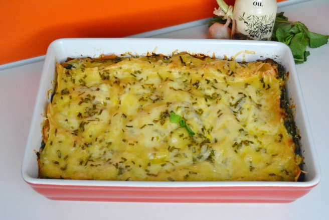 Lasagna cu somon, spanac si leurda