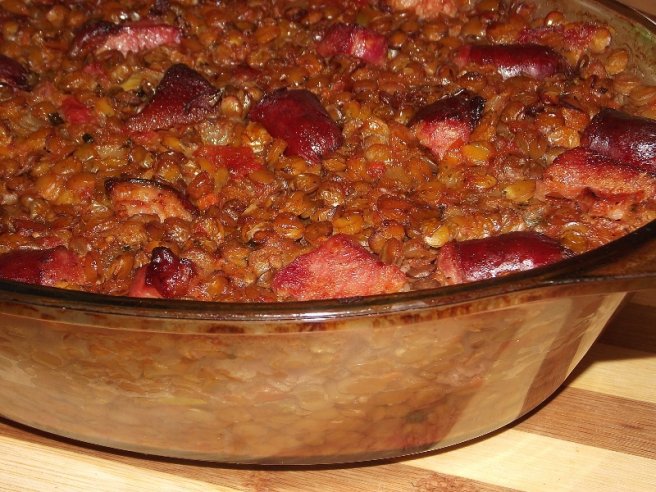 Linte cu carnati de bere si ciolan afumat