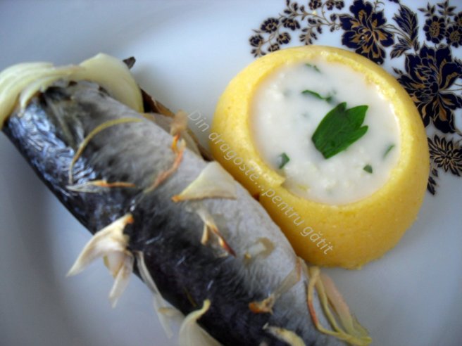 Macrou la cuptor & Mămăligă și mujdei de usturoi